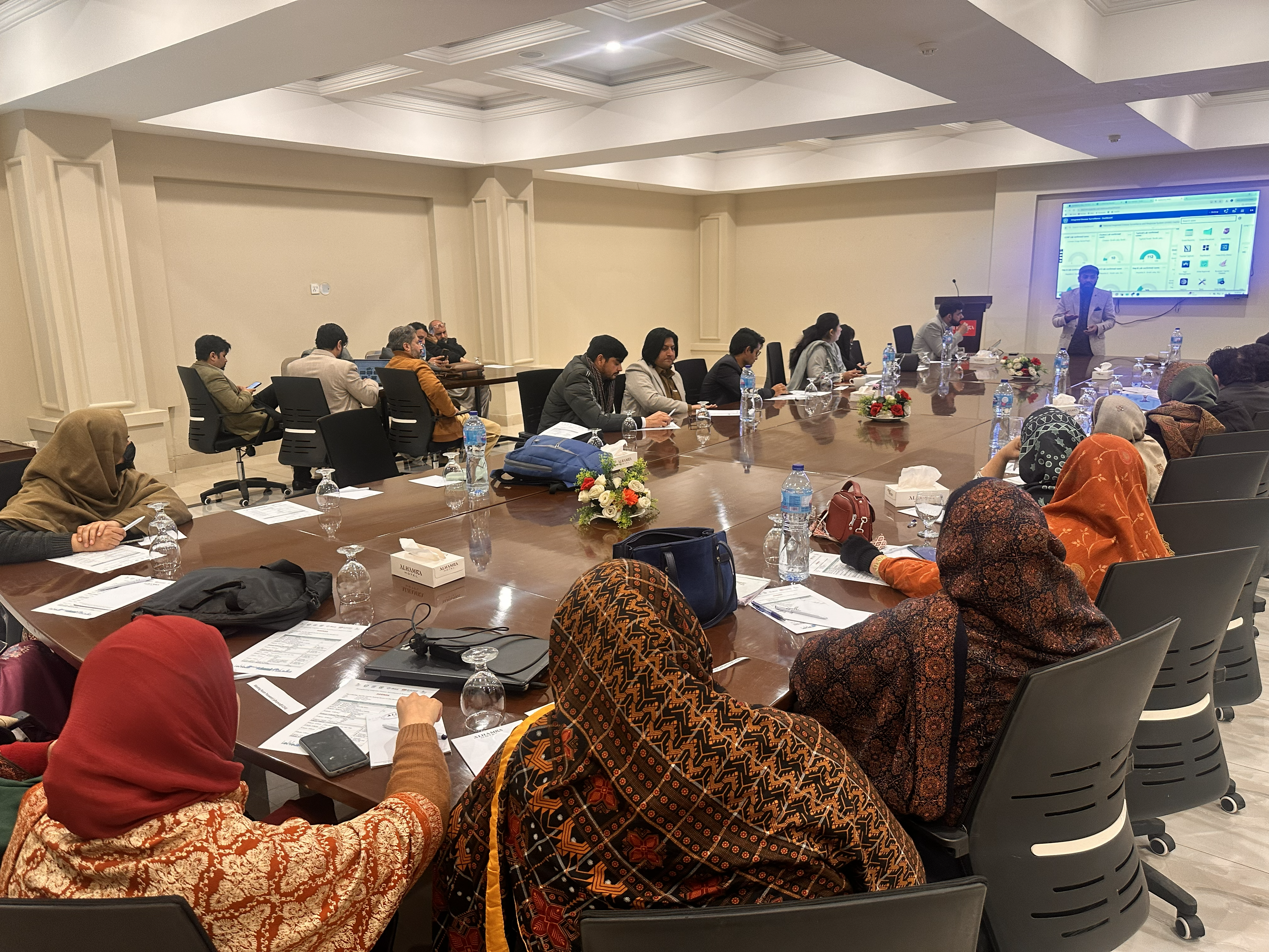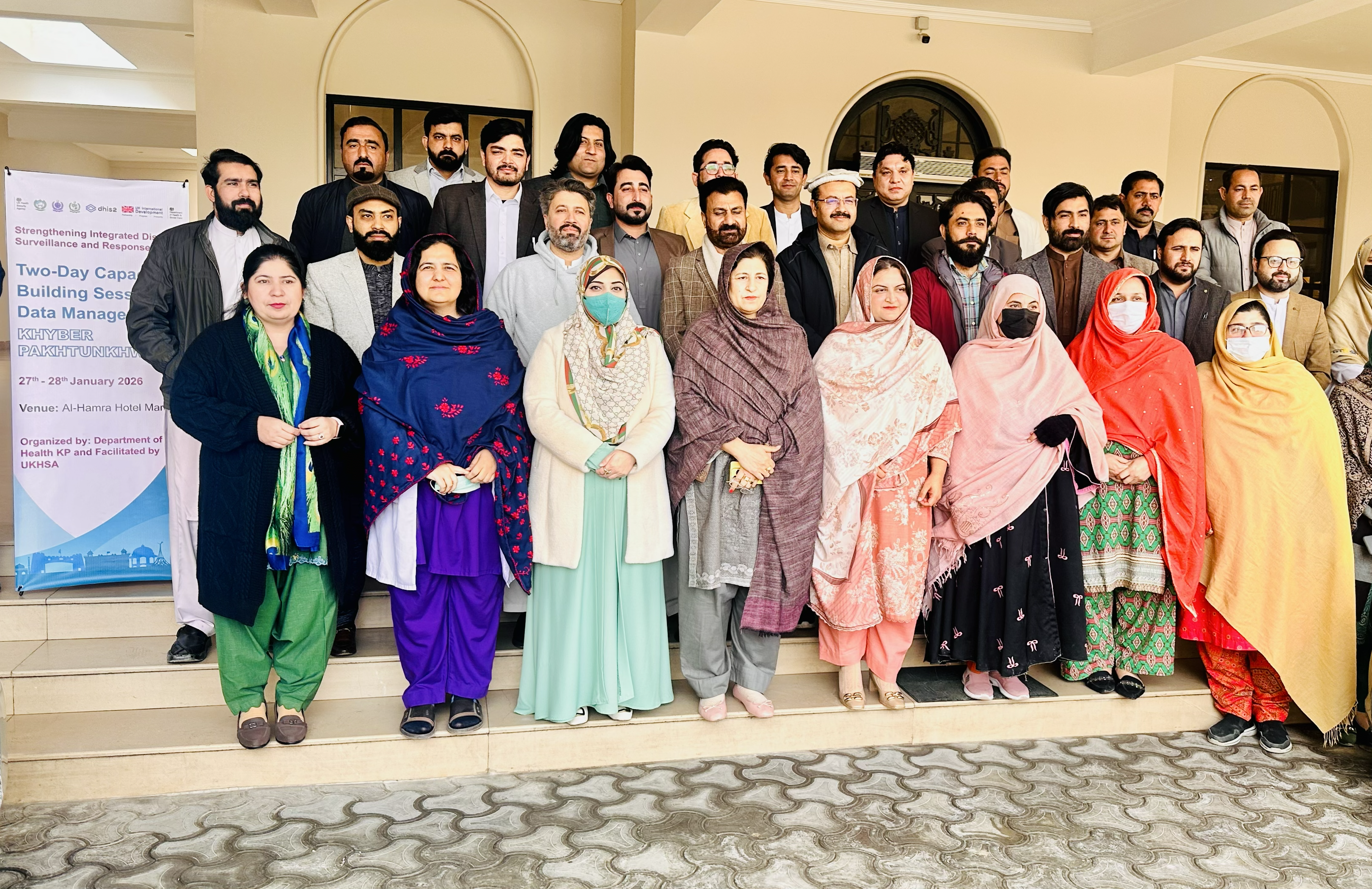 The two-day training was delivered in January 2026 by Pakistan's National Institute of Health, the Khyber Pakhtunkhwa Health Department and the District Health Office Mardan, with technical support from UKHSA's International Health Regulations Strengthening Project (IHR-SP). Health facility in-charges, district supervisors and Field Epidemiology Training Programme staff took part, gaining hands-on experience with the DHIS2 digital platform and its dashboards.